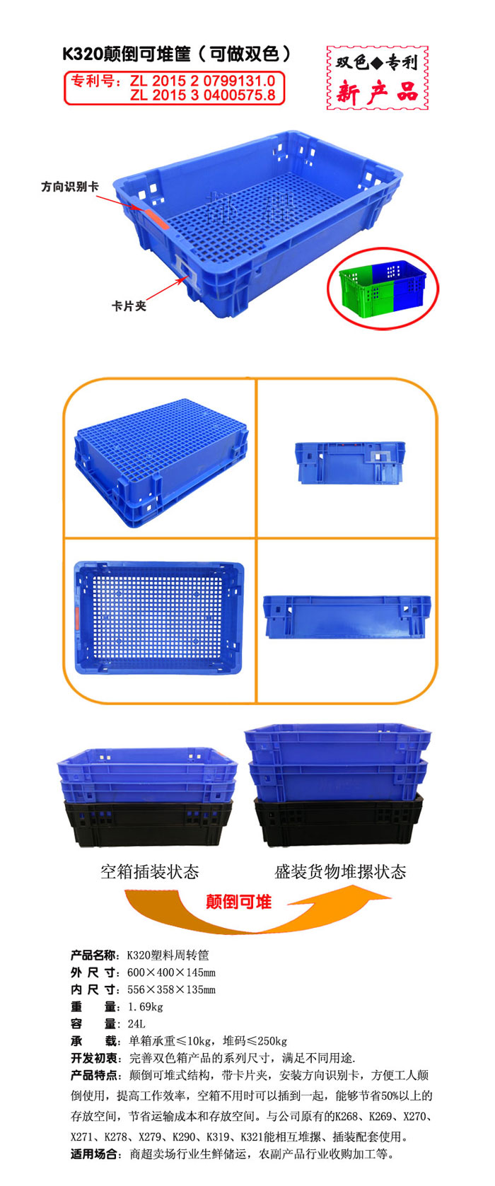較早從事塑(sù)料托盤、塑料周轉(zhuǎn)箱生產,主導產(chǎn)品有塑料托盤、塑料周轉箱(xiāng)|筐、各種(zhǒng)型號塑料(liào)筐、各種塑料盒|零件盒(hé)、ABS深水網浮等,產品品種有300多種,能(néng)夠滿足各行業貨物的倉儲和運(yùn)輸的需要(yào)。