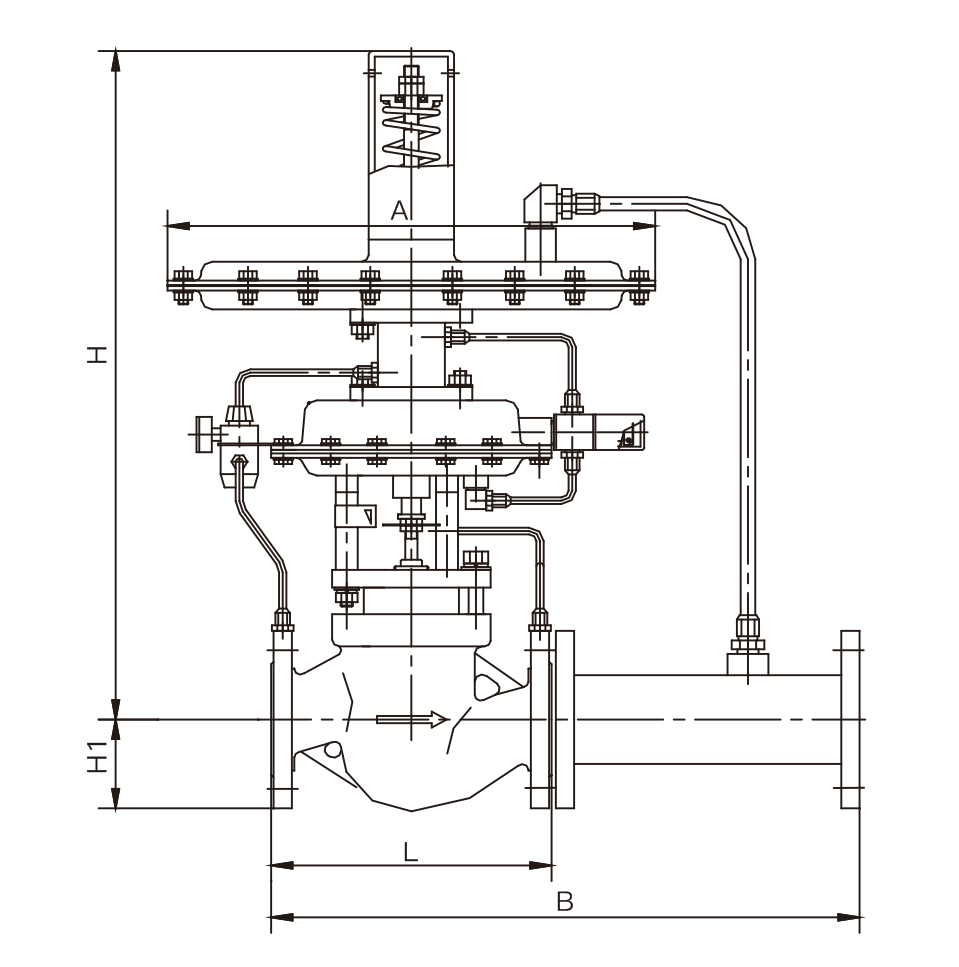 自力式帶指揮器壓(yā)力調節閥(即氮封(fēng)裝置)主要用(yòng)於儲罐頂部氮氣壓力恒定控(kòng)製,自力式氮封閥是一種無須外來(lái)能源,以彈簧為動力核心利(lì)用被調介(jiè)質自身的壓力來控製閥芯位置變化,達到自動調節和穩定壓力的目的,以保護罐內物料不被氮化及儲罐的安全。該閥由ZZYVP快速(sù)泄放閥及ZZV自力式(shì)微壓調節閥兩大部分組成。快速泄放閥由壓力(lì)控製器及ZMQ-16K型(xíng)單座切斷(duàn)閥組成。