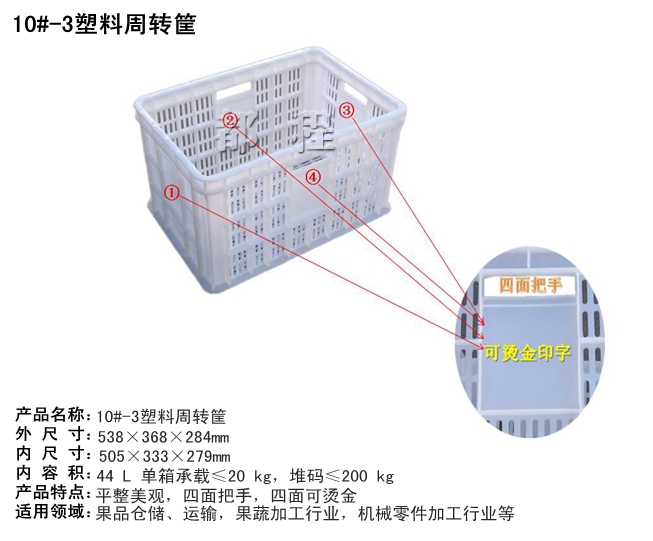 較早從事塑料托盤(pán)、塑料周轉(zhuǎn)箱生產,主(zhǔ)導產品有塑料托盤、塑料周轉箱|筐(kuāng)、各種型號塑料筐、各種塑料盒|零件盒、ABS深(shēn)水網浮等,產品品種有300多種,能夠滿(mǎn)足各行業貨(huò)物的倉儲和(hé)運輸的需要。