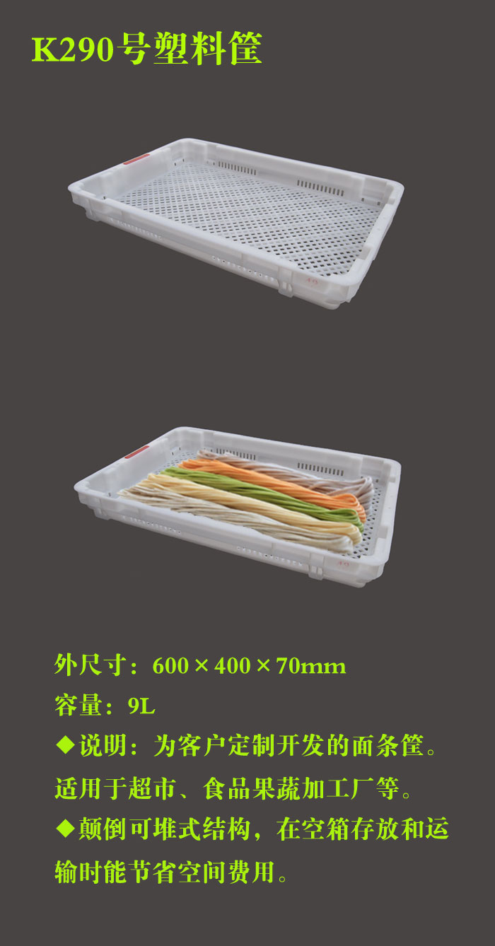 較早從事塑料(liào)托盤、塑料(liào)周轉箱生產,主導產品有塑料托盤、塑料周轉箱|筐、各種型號塑料筐、各(gè)種塑料盒|零件盒、ABS深水網浮(fú)等,產品品種有300多種,能夠滿足(zú)各行業貨物的倉儲和運輸的需要。